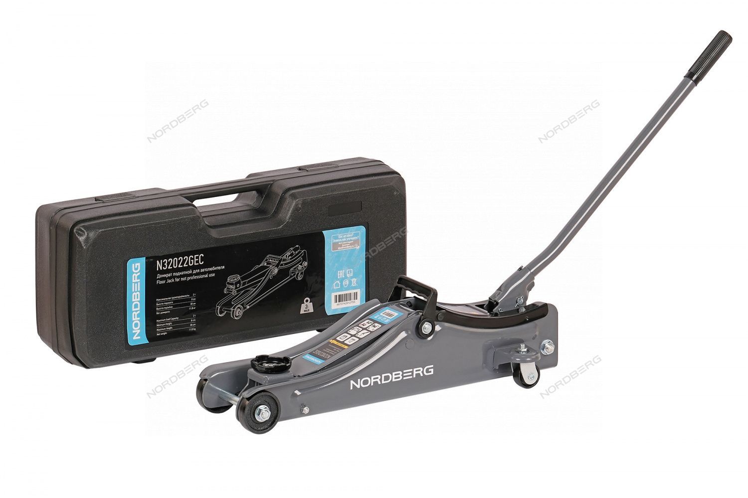 Домкрат подкатной для автолюбителя в кейсе, 2 т NORDBERG N32022GEC