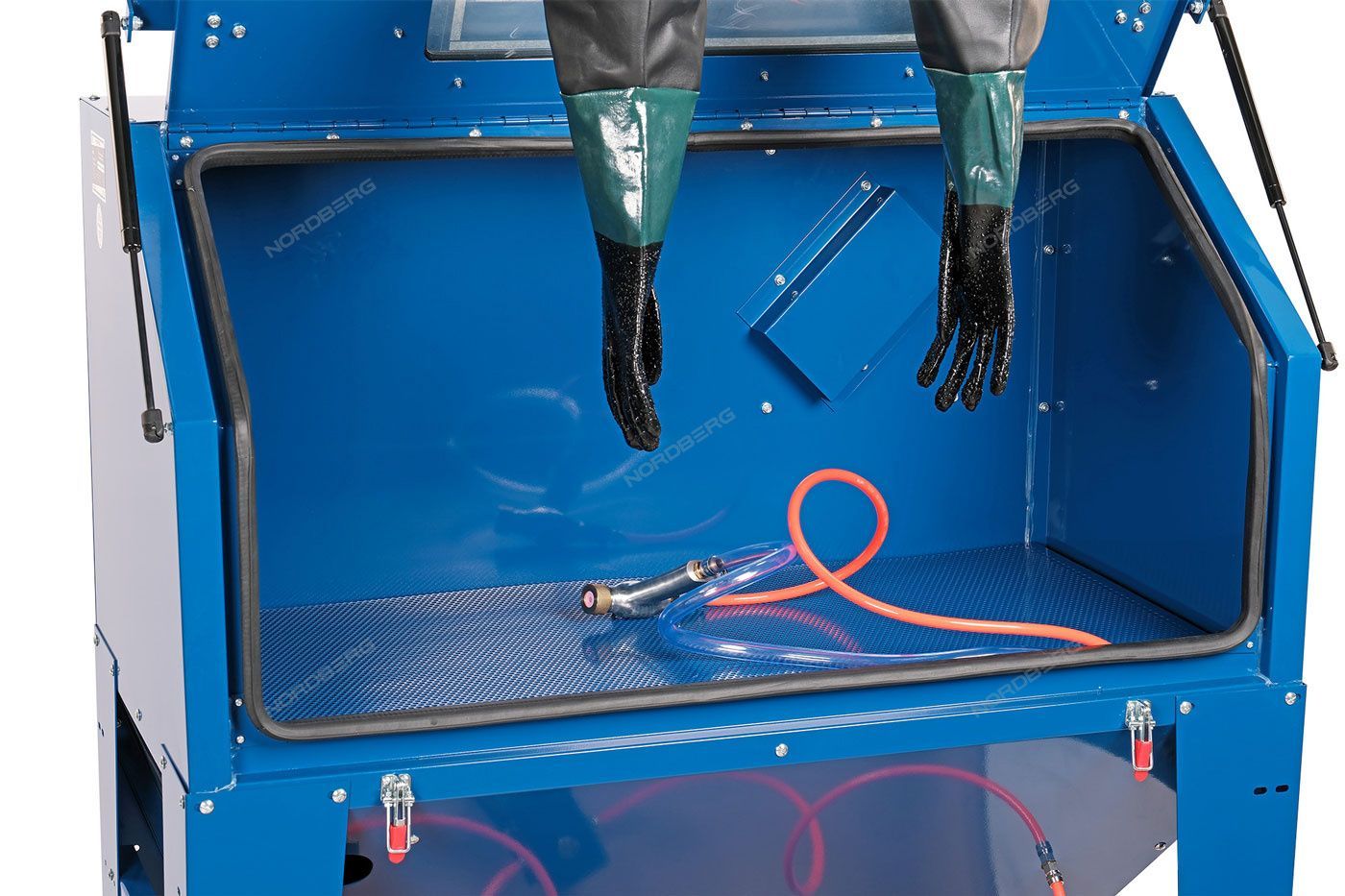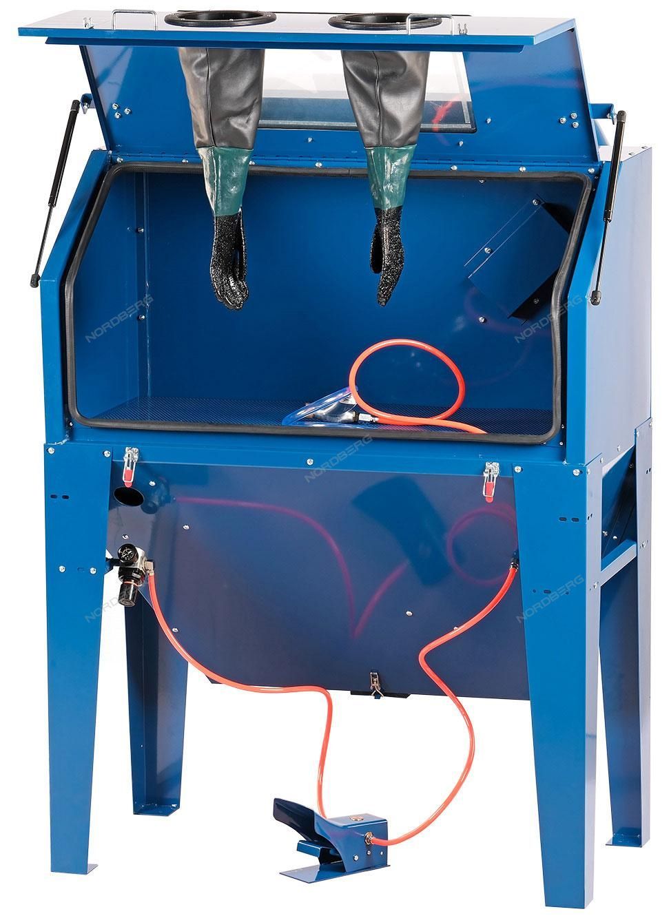 Пескоструйная камера NORDBERG NS4 Предназначена для обработки воздушно-пескоструйным способом поверхностей изделий, снятия ржавчины, грунта, слоев краски, матирования. Работает от сжатого воздуха. Позволяет производить обработку без создания специальных площадок и дополнительной защиты оператора.