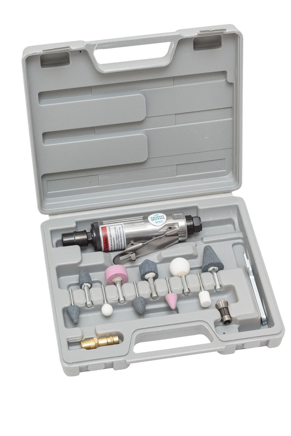 Характеристики Диаметр впускного отверстия (дюйм) : 1/4", Размер цанги (мм) : 6, Среднее потребление воздуха (л/мин) : 85, Скорость свободного вращения (об/мин) : 25 000, Рабочее давление (бар) : 6, Комплектация : комплект насадок - Отзывы