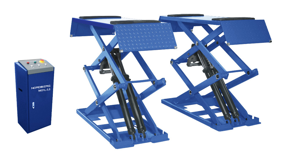 Подъемник ножничный низкопрофильный, максимальная г/п 3 т NORDBERG N631L-3_380 ТОЛЬКО легковых автомобилей массой до 1.5 тонны, так как при складывании его малая высота позволяет проехать авто.