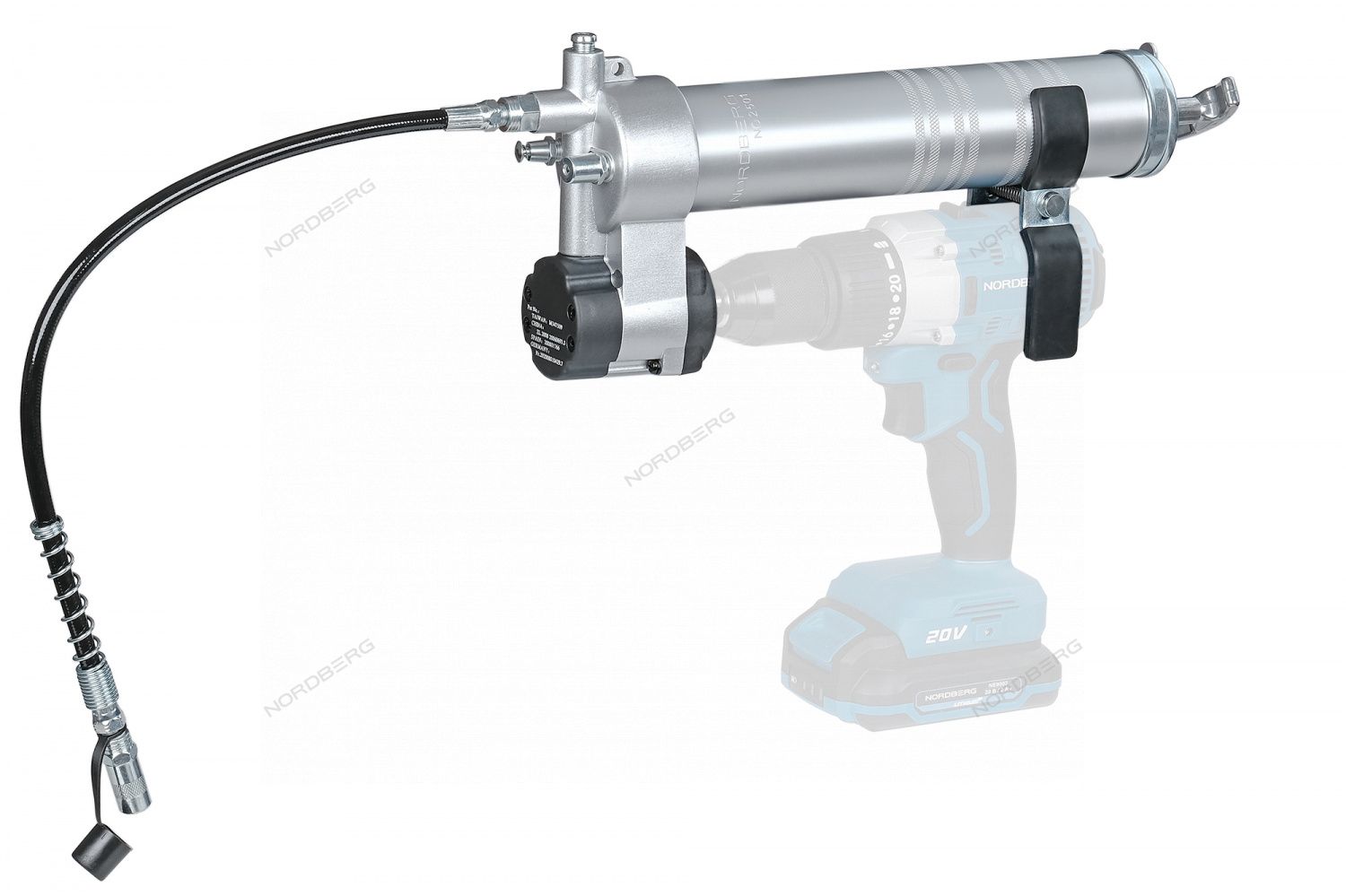 NORDBERG NO2501 Шприц-насадка на шуруповерт, плунжерный для густой смазки, 400 мл