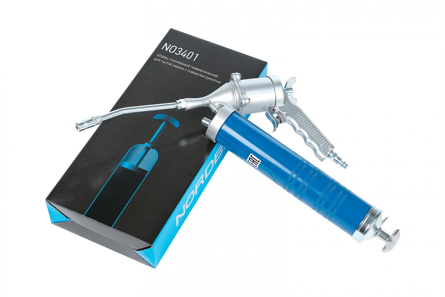 NORDBERG Шприц NO3401 плунжерный пневматический для густой смазки, 400мл, с поворотом рукоятки