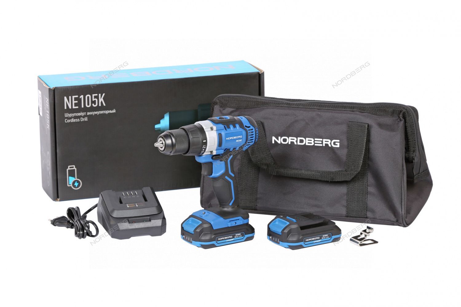 Шуруповерт аккумуляторный макс.диам. сверла 13 мм, 20 В, 50 Нм с 2 аккумуляторами и зарядным уст-вом NORDBERG NE105K