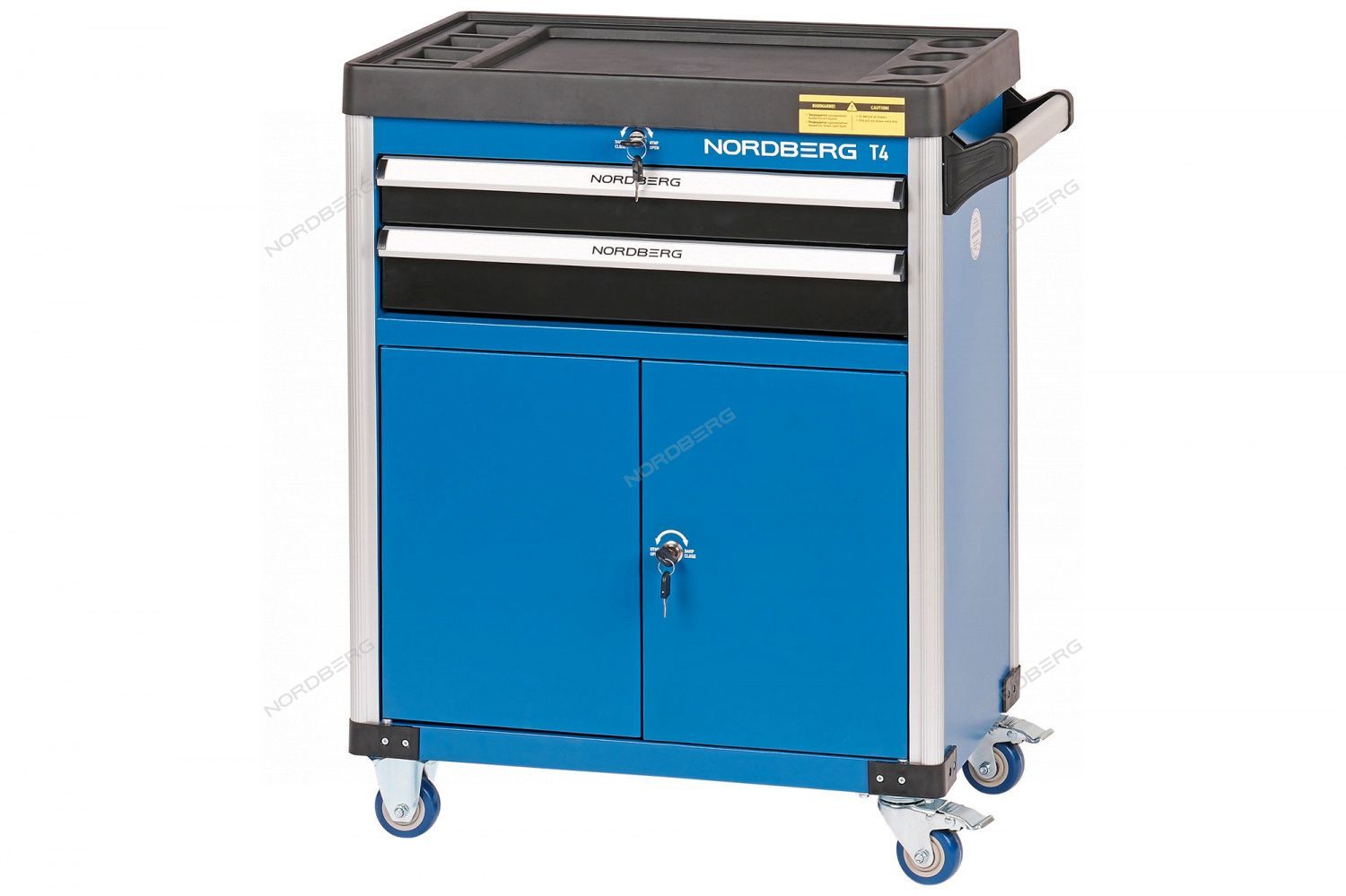 Тележка инструментальная, 2 выдвижных ящика, 2 полки с дверцами NORDBERG T4